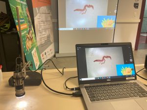 La « dino » permet de projeter sur l’ordinateur et sur grand écran notre parasite vu au microscope et de montrer en même temps sa taille réelle
